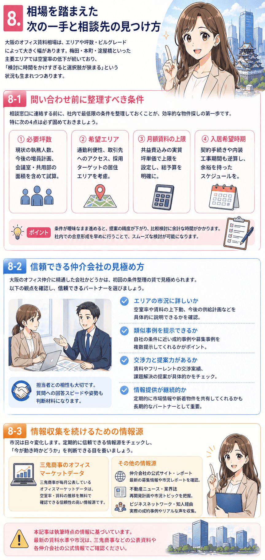 本記事は執筆時点の情報に基づいています。最新の賃料水準や市況は、三鬼商事などの公表資料や各仲介会社の公式情報でご確認ください。