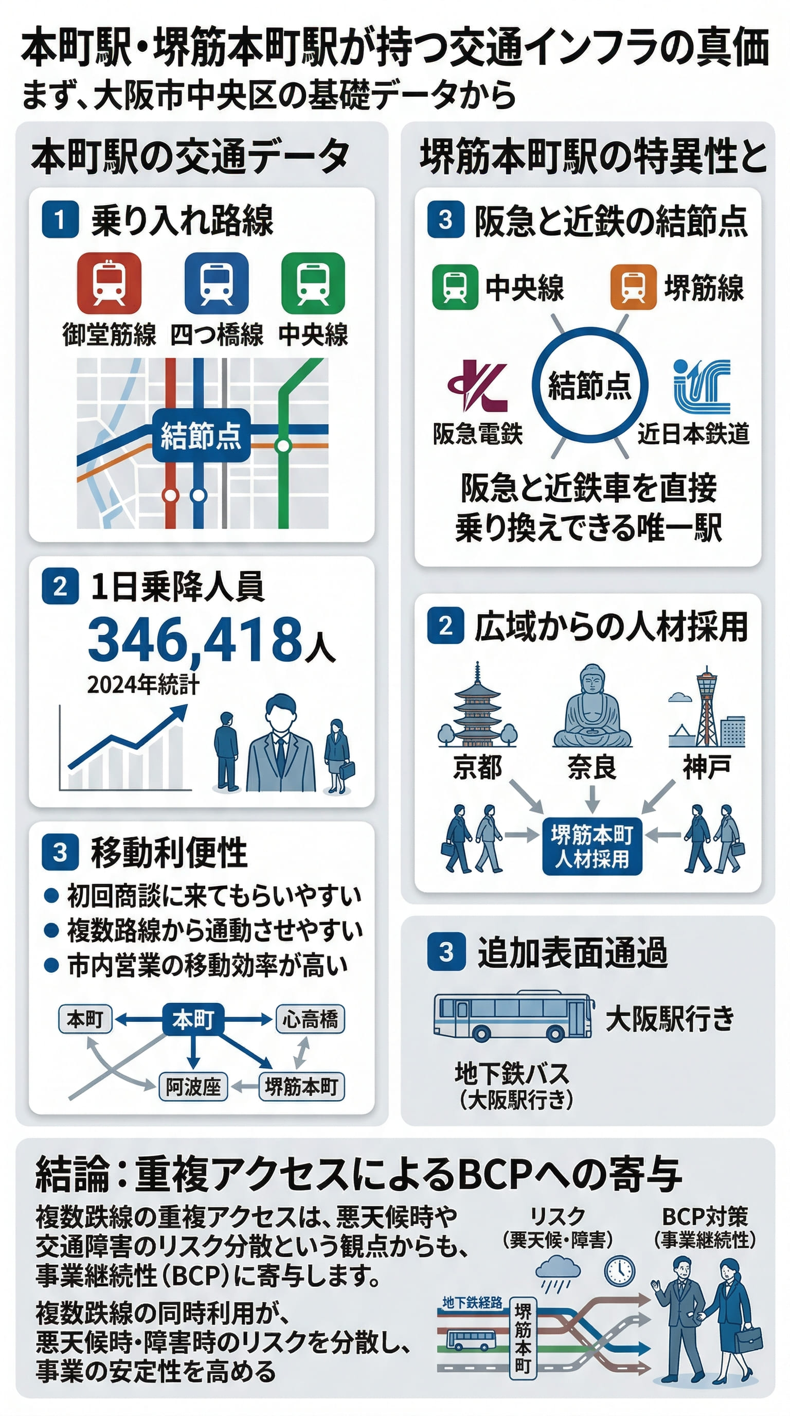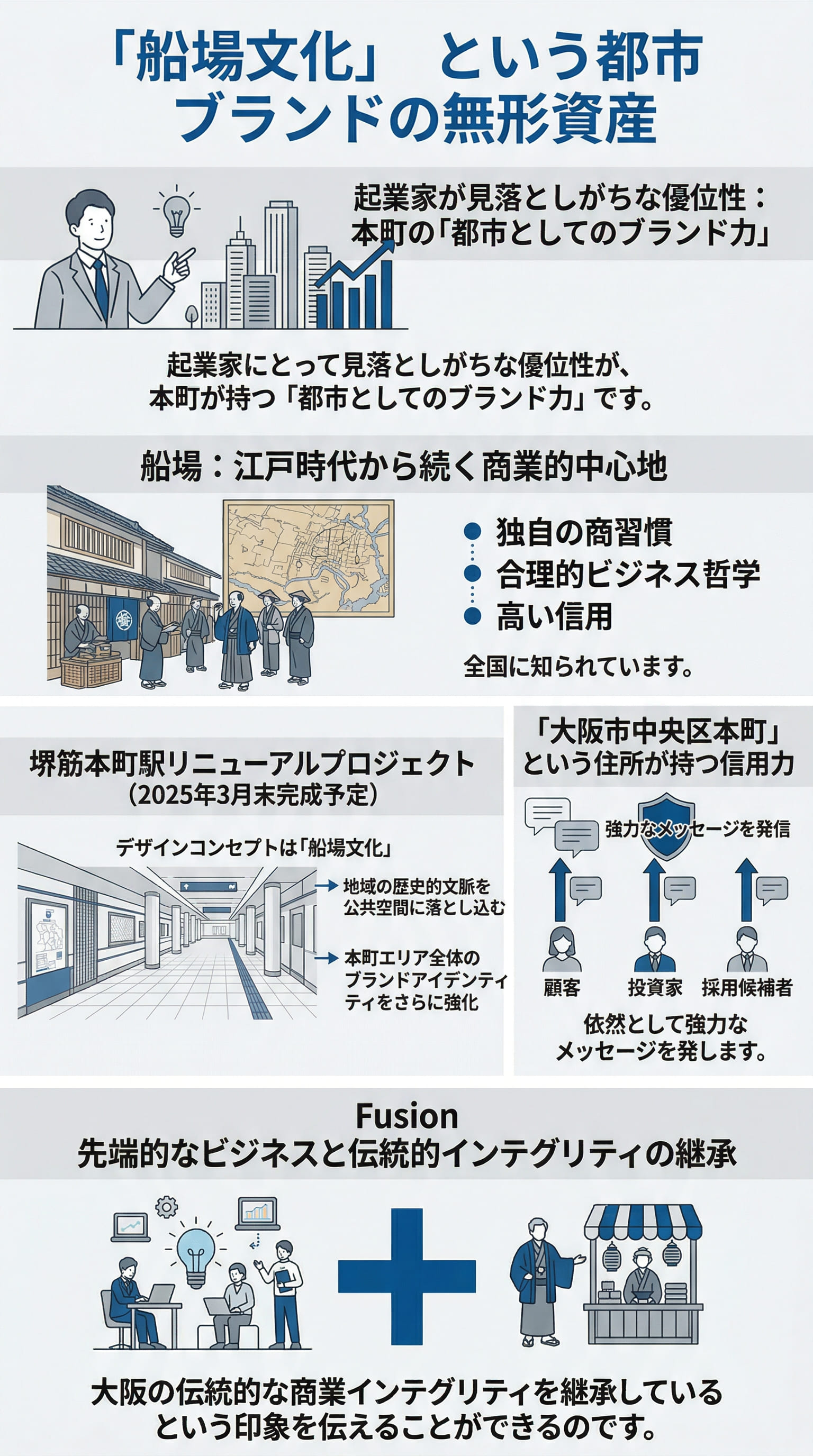 「大阪市中央区本町」という住所が持つ信用力は、依然として顧客・投資家・採用候補者に対して強力なメッセージを発します。